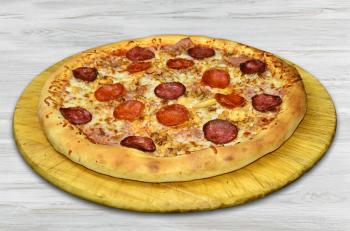 (pizzaszósz, szalámi, sonka, csirke, gyros hús, mozzarella)