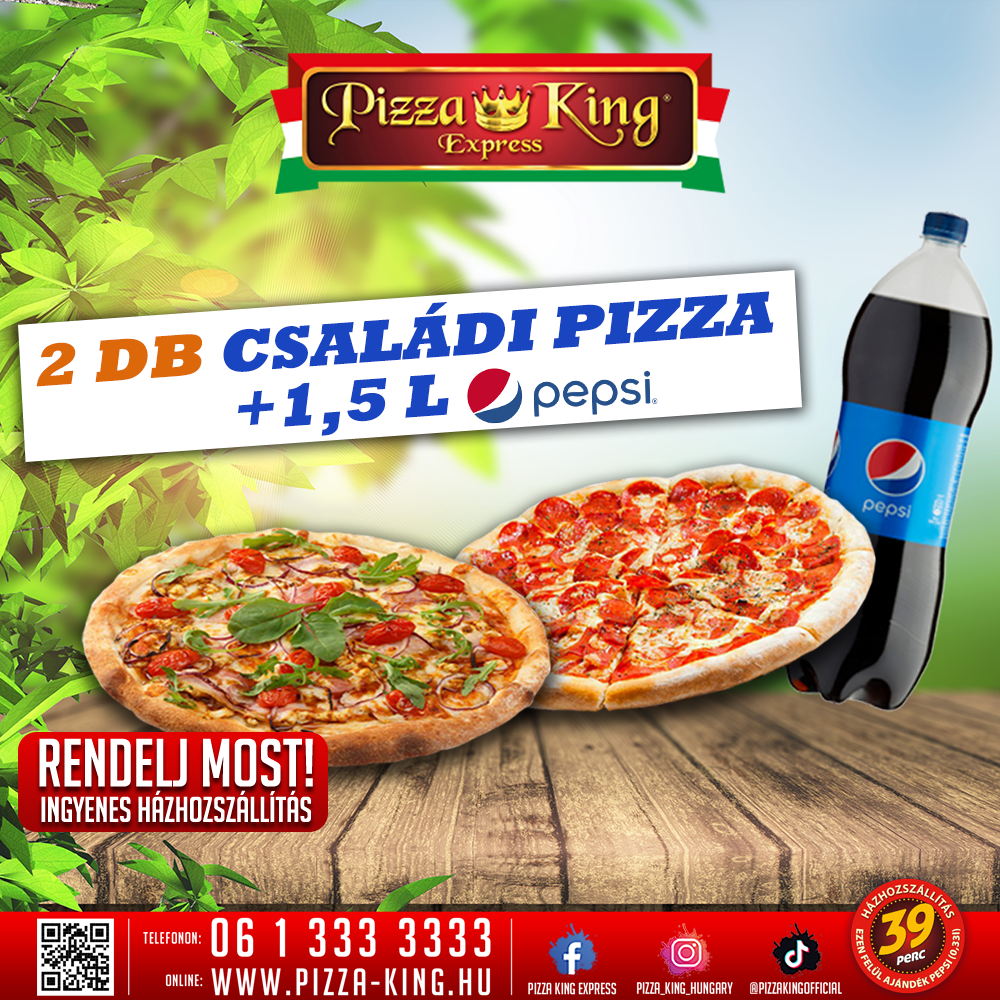40 cm-es 1+1 pizza akció 1L Pepsivel